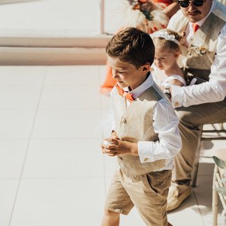 They were closely followed by Hannah's gorgeous Nephew who was ring bearer for the day. He was almost a mini flower man, wearing the same as the guys but with a coral bow tie instead of a tie and shorts instead of trousers. He walked the aisle solo and everyone looked on with so much admiration and pride for the little guy. He was just perfect.