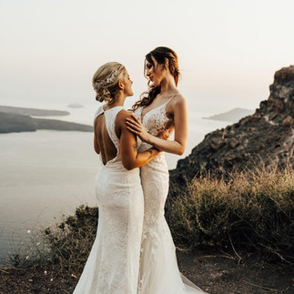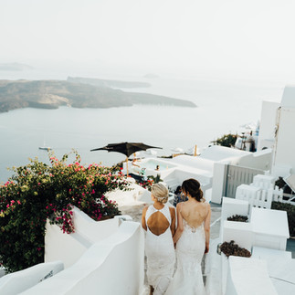 Hannah and Justine were very clear in their designs for their wedding. They wanted light and airy and for absolutely nothing to detract from the stunning view over the caldera.